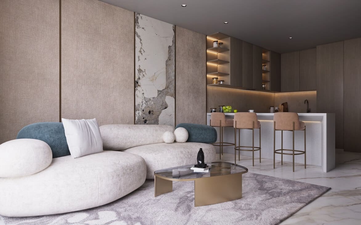 The architectural language of the development draws inspiration from the calming rhythms of the sea, reflected in its soft, flowing lines and subtle design motifs that echo marine life and coastal serenity.