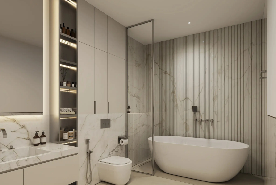 The project stands out for its exceptional amenities that elevate everyday living into a luxurious experience. Residents can enjoy an adult swimming pool, a dedicated children’s pool, a kids’ play area, a fully equipped gym, and tranquil spaces for Pilates and yoga. For ultimate relaxation and convenience, the building also houses a world-class restaurant, a premium beauty salon, and a luxurious on-site spa.
