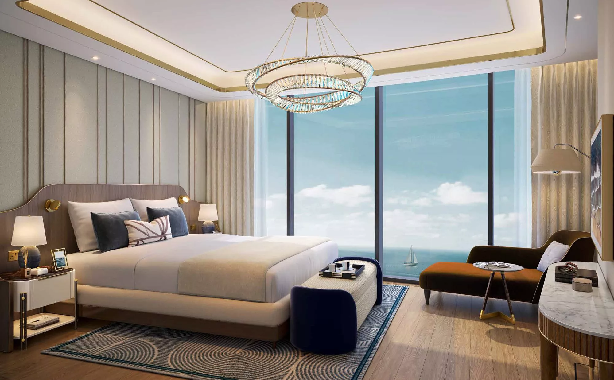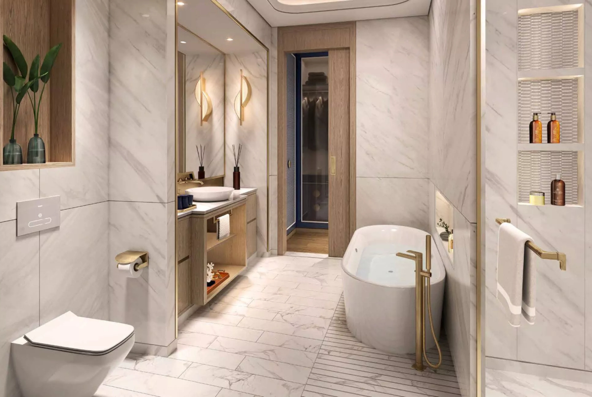 Select residences will have a private swimming pool on the terrace for the utmost convenience of the homeowners. The design of the apartments will feature white and gold decor, chandeliers and ceiling mirrors. Throughout the development, there will be various elements of luxury cruise ships, which will wow with the utmost exquisiteness.