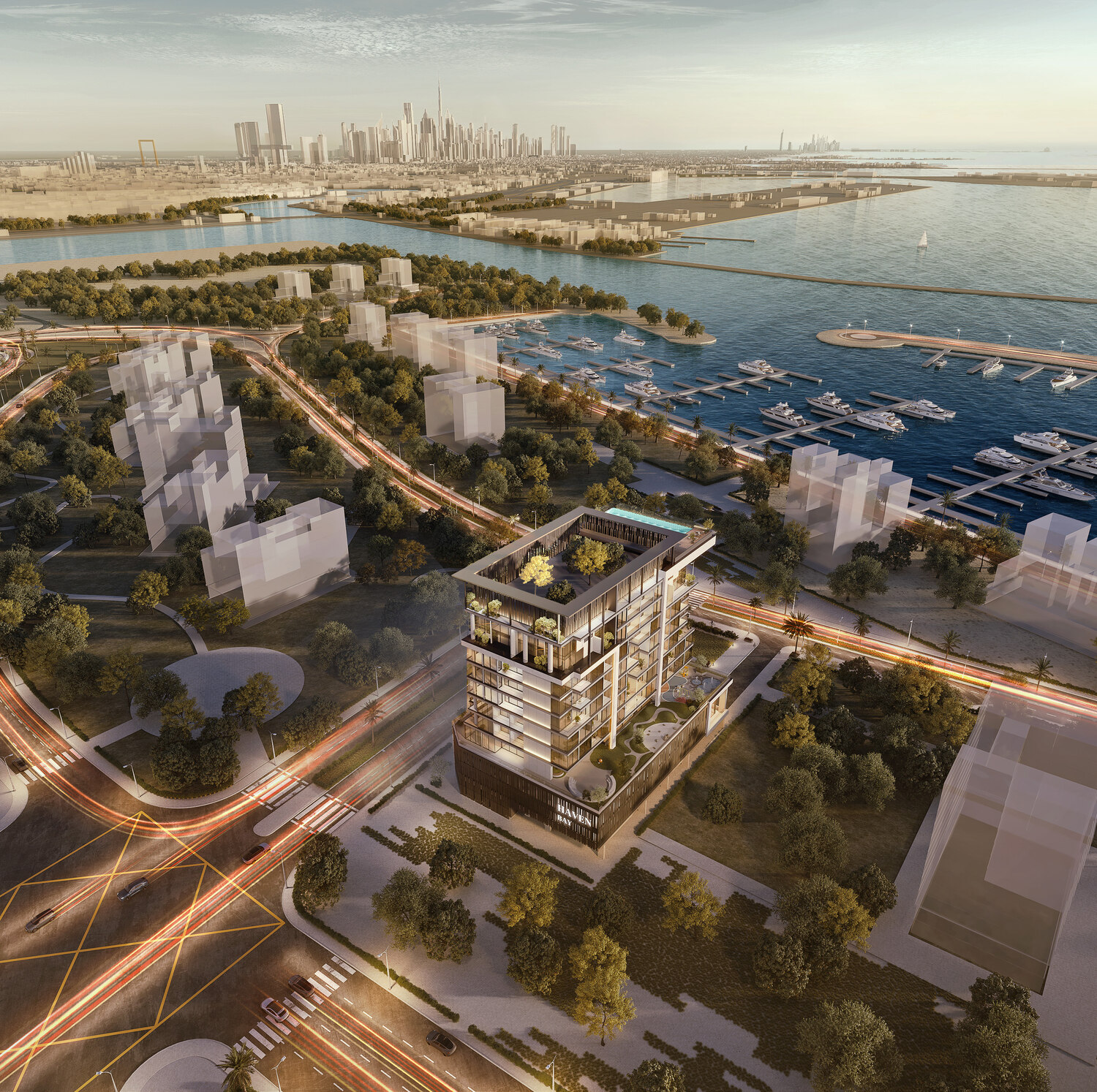 Situated within Dubai Islands, Haven Bay provides a panoramic view of the Arabian Gulf and is located strategically near various attractions of the main city. It’s only 20 minutes away from Dubai International Airport for frequent travelers. Plus, the development is well-connected to major road networks, particularly Sheikh Zayed Road, so it becomes easy to reach Downtown Dubai, Dubai Marina, and other places of interest. The metro extension, due to come up in the near future, will further enhance its connectivity. Dubai Dolphinarium and Children’s City are just 20 minutes away, while it takes a 30-40 minutes’ drive from the Burj Khalifa, Burj Al Arab, and Palm Jumeirah.