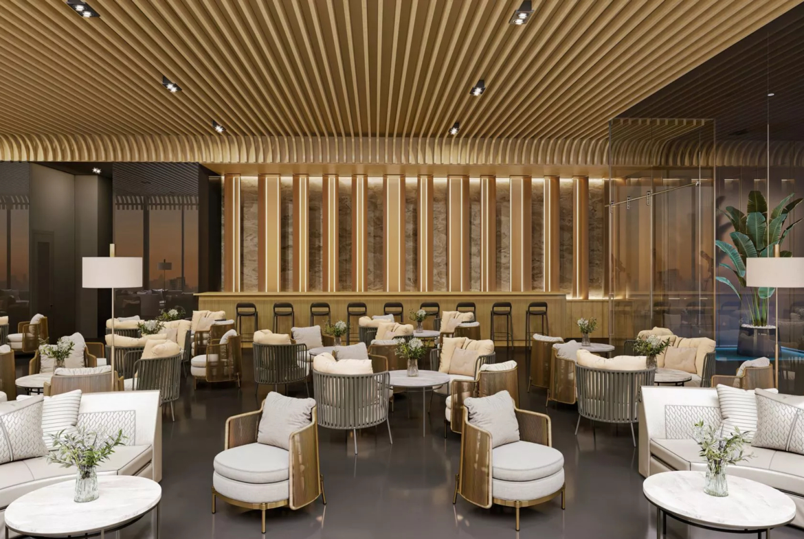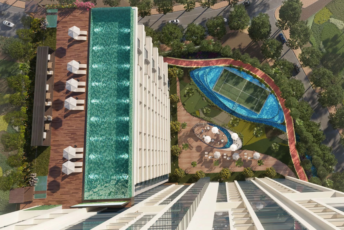 The high-rise complex will be equipped with a wide array of ultimate recreational facilities. These include virtual golf, rainforest dining, padel on the water, outdoor and indoor children’s play areas, an observatory lounge, a meditation zone, a landscaped pool deck, a library, a running track, an infinity swimming pool, a bowling alley, billiards, a party hall, a rainforest lounge, and an outdoor cinema, among others.