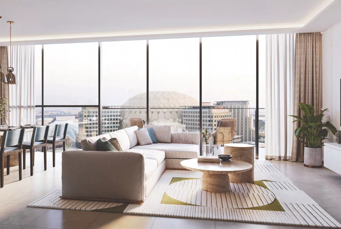 The larger-than-average apartments will boast floor-to-ceiling windows and spacious balconies, which will overlook Al Wasl Plaza, Jubilee Park and the Women’s Pavilion. At the same time, the townhouses will be complemented with private gardens, which will make your living environment even more enjoyable. As well as this, the layouts also include a laundry room, a powder room, a study, a closet, a storage room and a maid’s room.