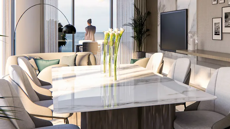 Located on Al Reem Island, the residential façade enjoys close proximity to Abu Dhabi’s most notable attractions, including the Louvre complex, Al Reem Mall, and The Galleria Maryah Island. With three bridges connecting the island to Downtown Abu Dhabi, residents benefit from easy access to the city center, financial district, and major roadways. Whether shopping at world-class malls, dining at fine restaurants, or seeking top-notch healthcare at Cleveland Clinic Abu Dhabi, everything residents need is just moments away.