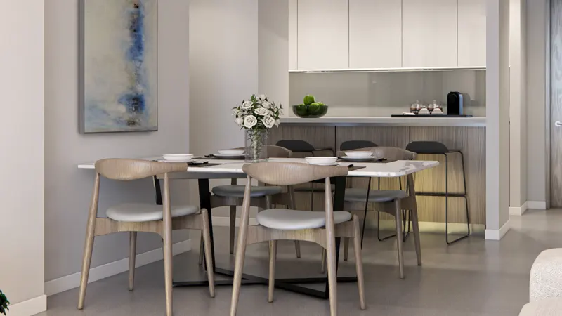 The design philosophy revolves around creating a harmonious blend of modern aesthetics and eco-friendly features. From the sleek kitchen cabinets to the fully tiled bathrooms, every detail exudes sophistication and functionality. With central air conditioning, built-in wardrobes, and en-suite bedrooms, each unit is thoughtfully crafted to cater to the discerning tastes of its residents, ensuring the utmost comfort and convenience at every turn.
