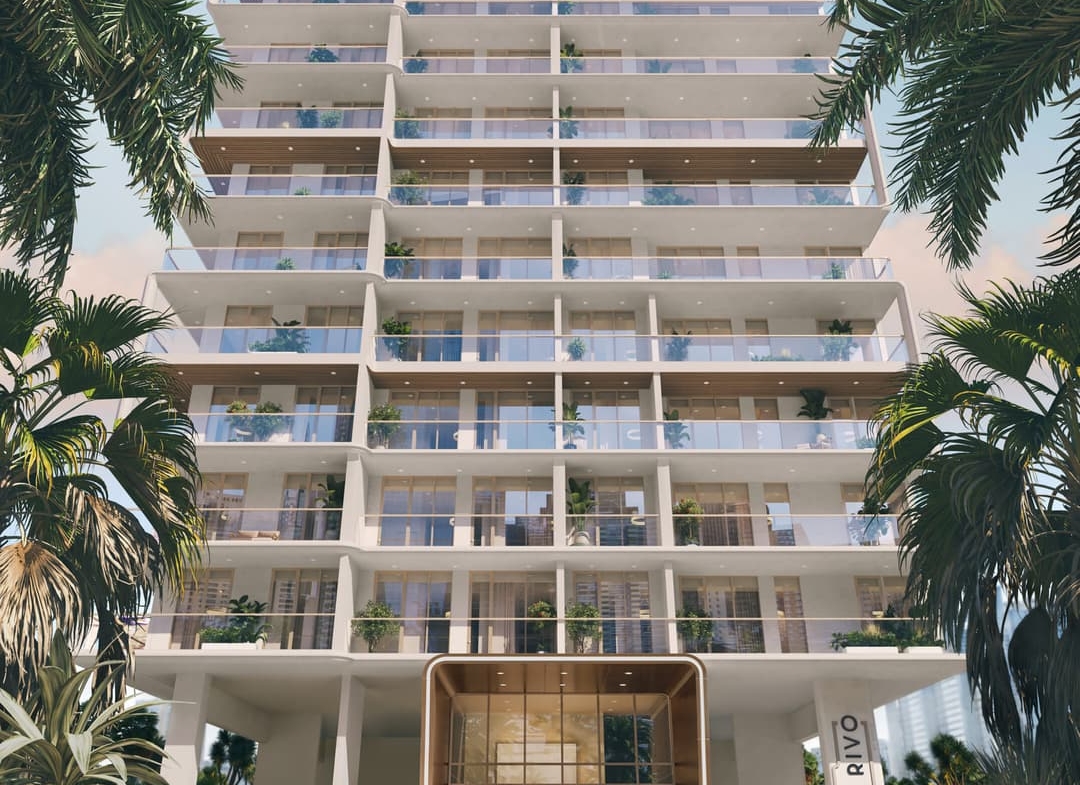 Rivo is envisioned as a living sculpture, where architecture flows with elegance and balance. Its design merges clean white contours, warm wood accents, and expansive glass facades, creating an impression of movement and calm. Each level appears to float above the next, with curves that soften the structure’s presence and invite natural light into every residence. The result is a building that embodies harmony and timeless sophistication.