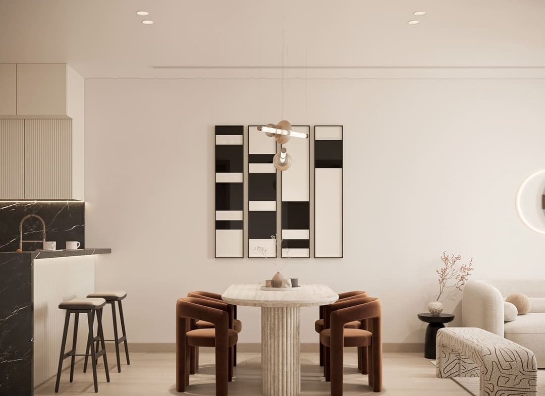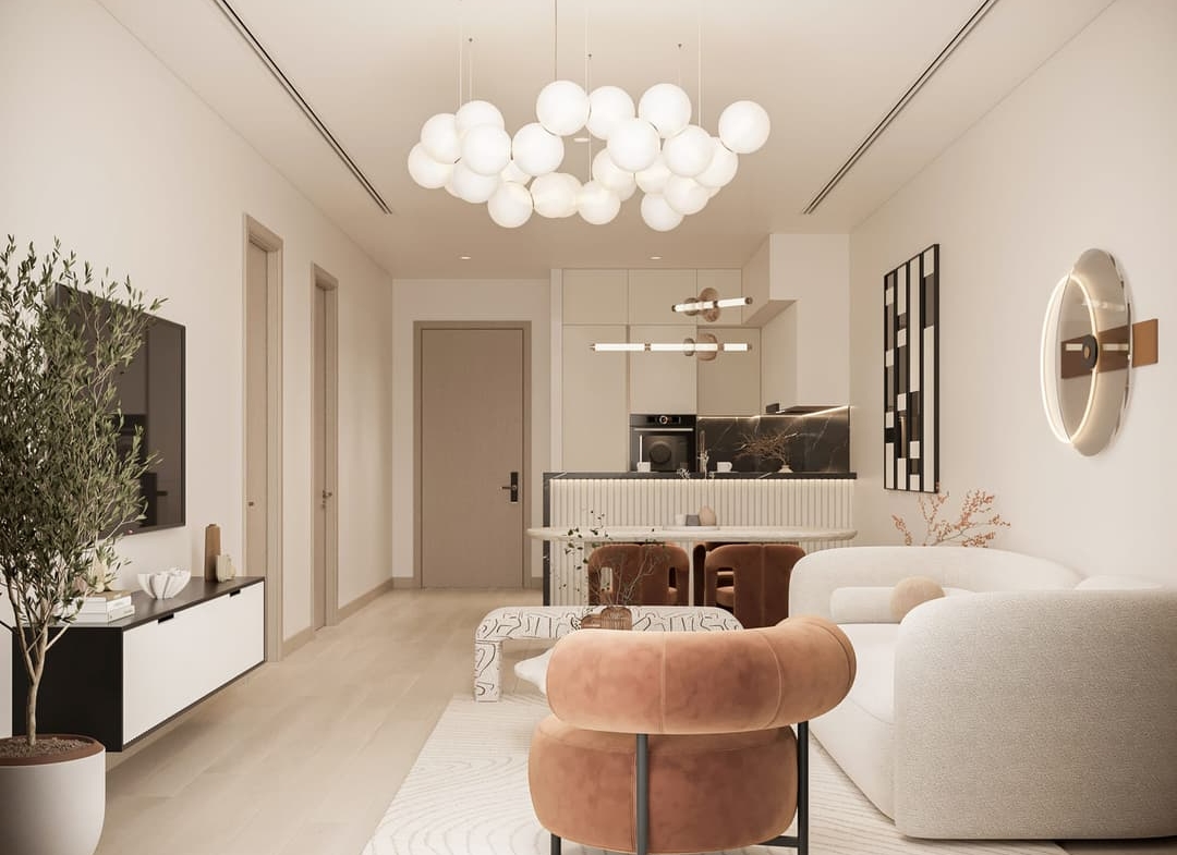 Inside, the residences continue this theme of flowing elegance. Soft color palettes of eggshell, pine, and deep wood set a tone of calm continuity, while intelligent layouts maximize both openness and practicality. From sleek studios to spacious one- to four-bedroom apartments, each unit has been crafted with attention to detail, offering comfort, functionality, and a seamless connection between spaces.