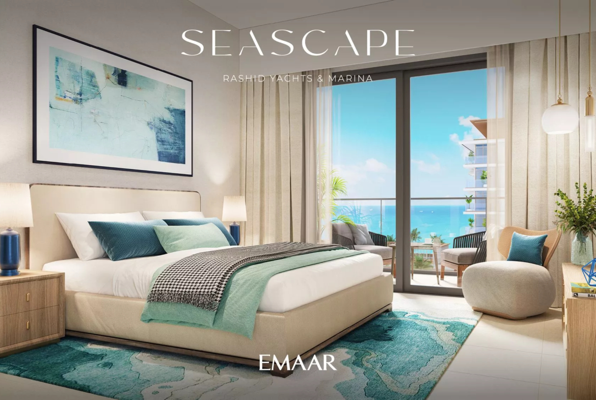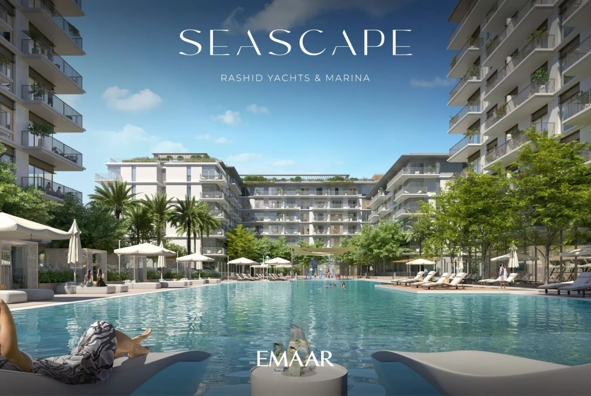 Seascape, launched in Q4 2022, is a prime residential development by Emaar Properties in the vibrant area of Rashid Yachts & Marina. The project will consist of 4 buildings, ranging from 6 to 18 floors, and offers a selection of meticulously designed 1–3 bedroom apartments. There will also be 20 generously-sized 2-storey 3-bedroom townhouses available for purchase. In total, there are 391 residential units in the upcoming complex.