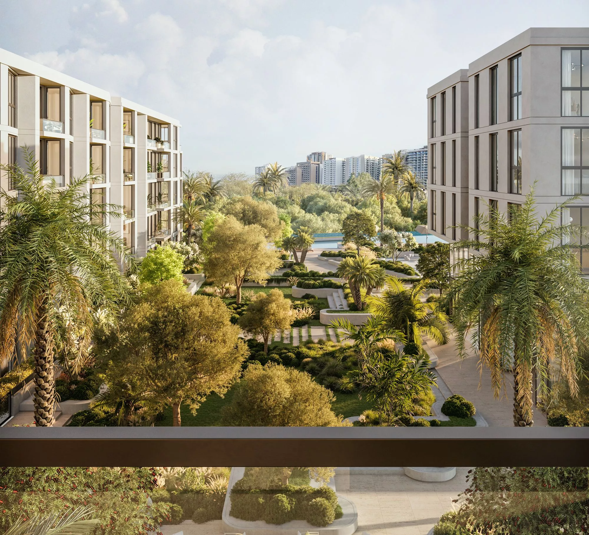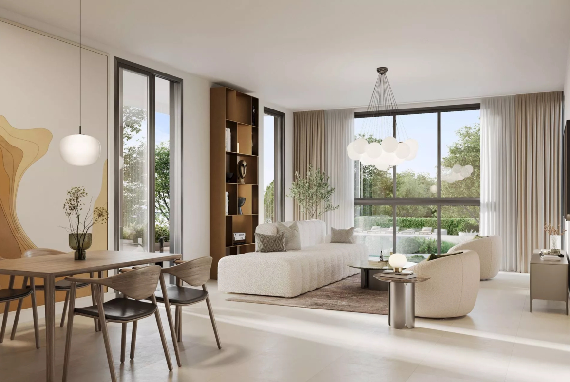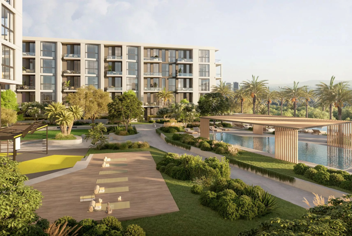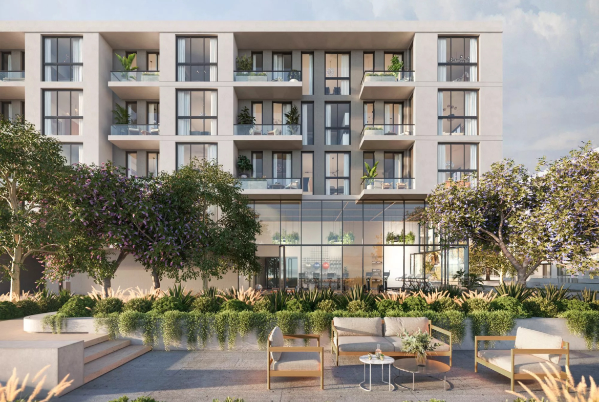 Terrazzo is a premium development by Taraf, the real estate division of the investment holding group Yas Holding, in Jumeirah Village Circle (JVC). It consists of 2 six-floor buildings, with 1–3 bedroom apartments ranging in size from 771 sq. ft to 2,121 sq. ft. The floor plans feature one or more balconies and terraces, whilst the 3-bedroom residences will be additionally equipped with a maid’s room. The nature-inspired decor will be executed in warm earthy green, brown and blue colours.
