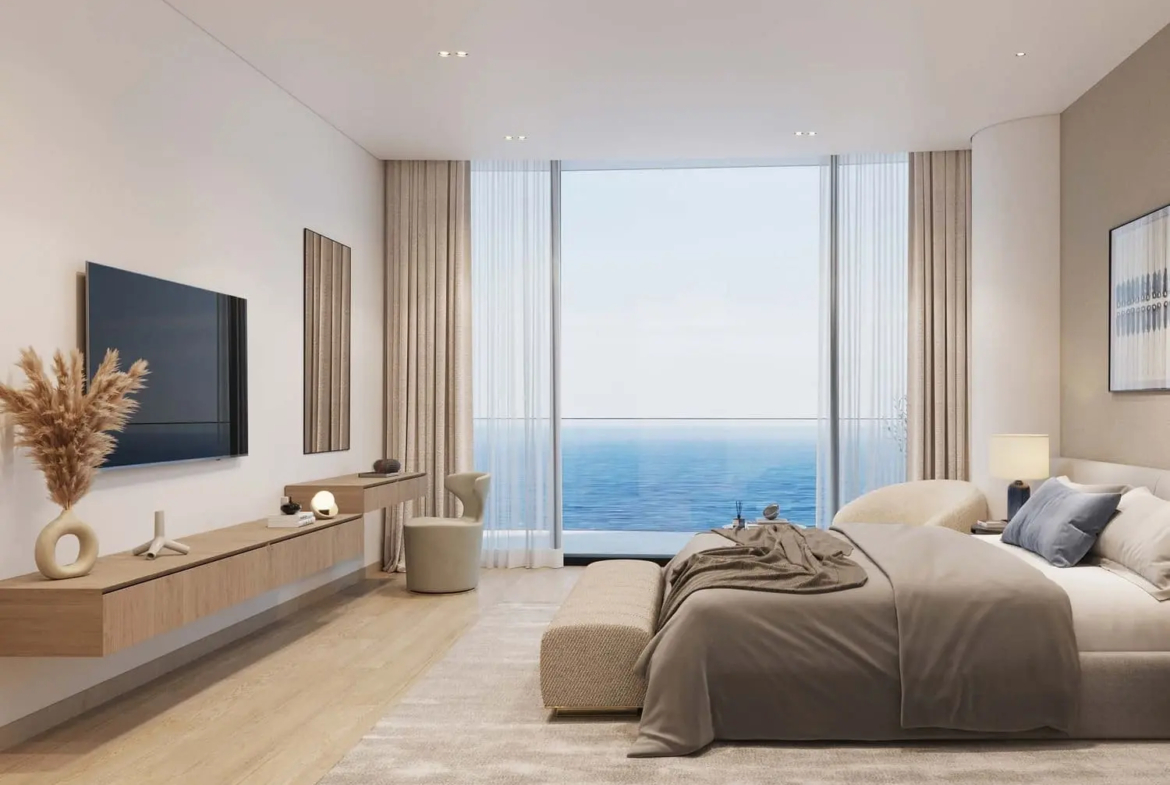 The Beach Residences at Al Marjan Island is a harmonious blend of contemporary design and beachfront serenity. This architectural masterpiece features striking facades that frame expansive, floor-to-ceiling windows, inviting the warmth and glow of natural light into every corner of your home.