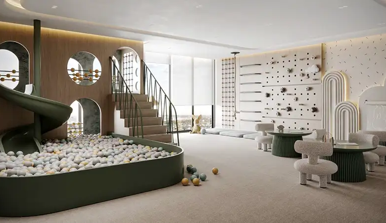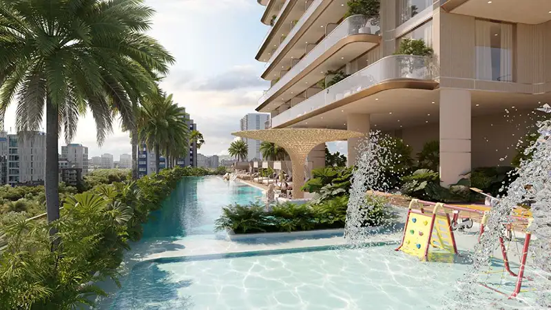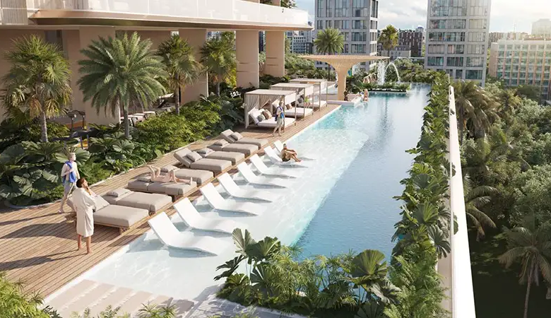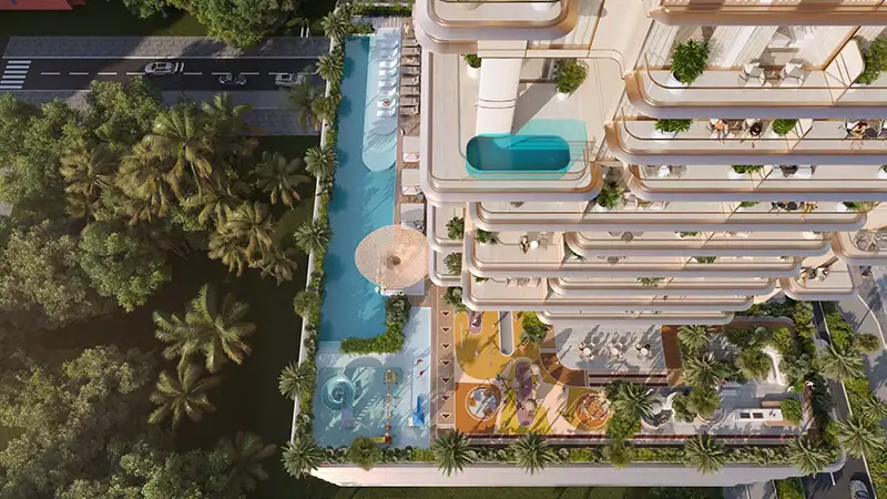 With a focus on design excellence and innovation, this development redefines urban living through its carefully curated spaces and world-class amenities levels. The first amenity floor serves as the heart of the façade, featuring state of the art fitness center, a luxurious sauna and steam room and vibrant clubhouse. As well as the 11th floor comes with indoor surprise offering serene spaces for unwinding and socializing. The highlight is the 40-meter infinity pool, a serene oasis that offers panoramic views of the city and skylines. Adjacent to this is a dedicated kids pool and splash pad, ensuring that young residents have their own space for fun and recreation. For more, residents can enjoy the BBQ lounge and pool bar providing the perfect setting for the social gathering and relaxation.